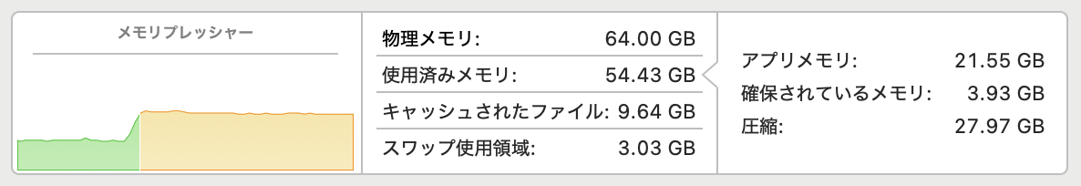 そうるとモデルの読み込みが開始するが、LLM はモデルを読み込んだだけの状態でも次の画像を見るとわかるようにそれなりのメモリ消費がロードタイミングでも発生する。